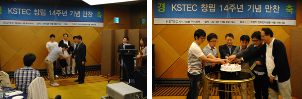 지난 10월 6일, KSTEC이 창립 14주년을 맞아 서울 그랜드 인터컨티넨탈 카네이션룸에서 창립기념식을 가졌습니다. KSTEC의 창립기념일은 10월 1일이지만 추석 연휴와 외부 프로젝트 중인 직원들의 일정을 고려하여 토요일에 열리게 되었습니다.